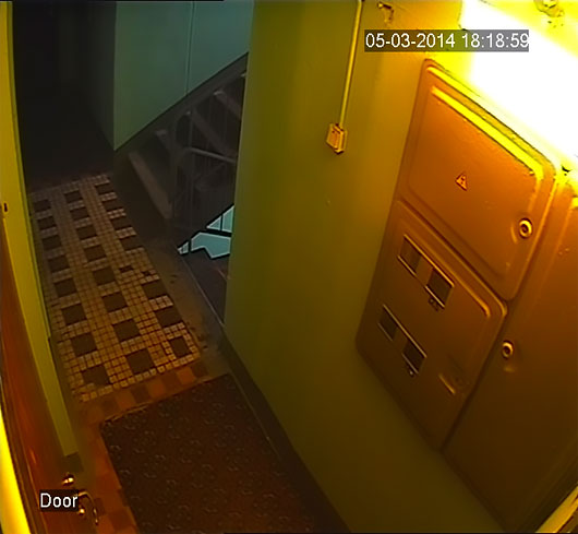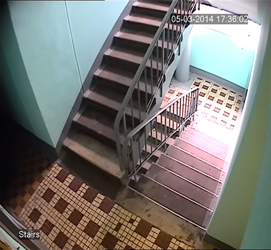 Лестничная площадка на этаже. Как правило, задачей такой системы является наблюдение за посещением квартиры и прилегающей территории. Обычно комплект состоит из кнопки звонка, связанной с электромагнитным замком (с возможностью удаленного ответа и открытия через смартфон), нескольких антивандальных камер и регистратора размещенного в квартире, домофона на уличной двери.